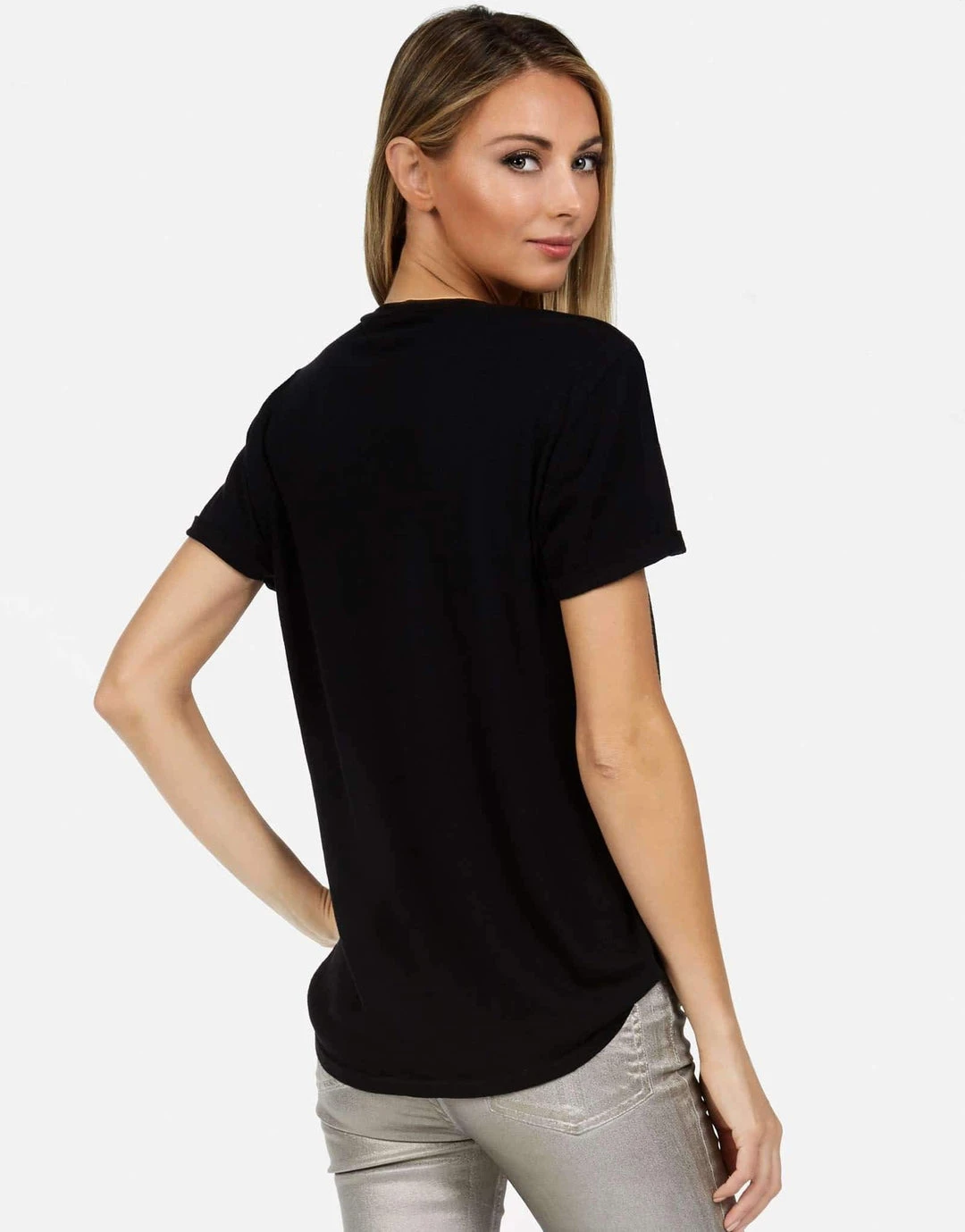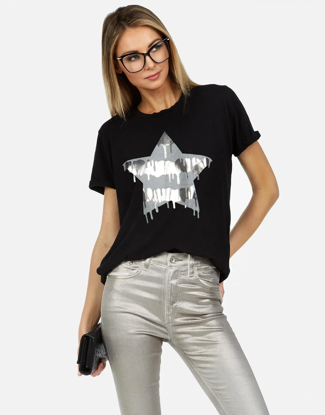 WEB EXCLUSIVE | Dripping Star Printed on Ultra Soft Lightweight Tee in Black by Lauren Moshi.