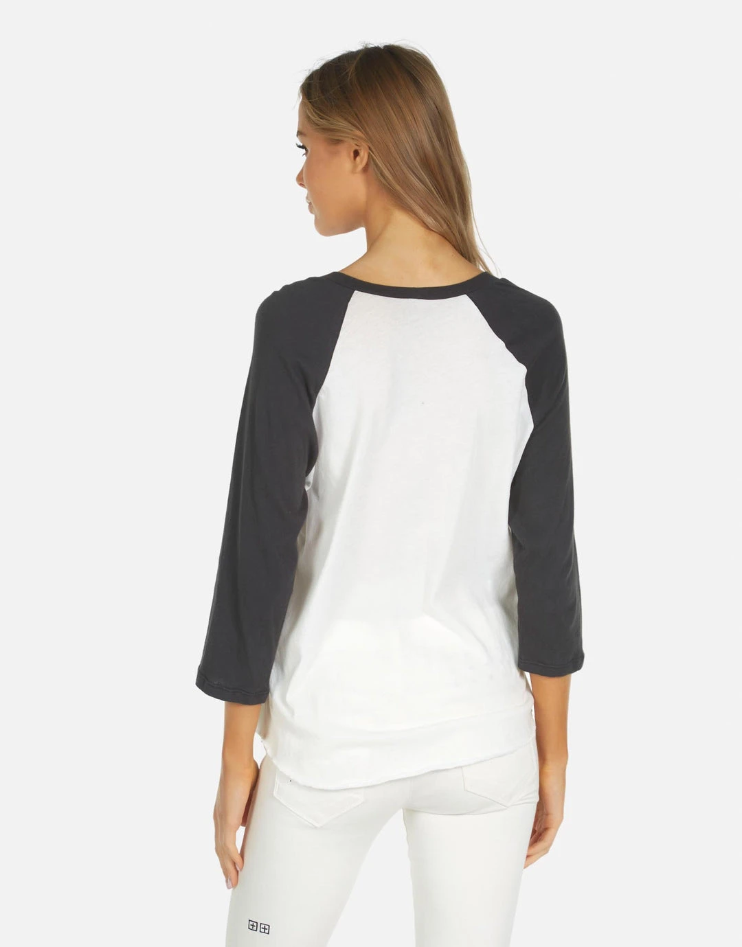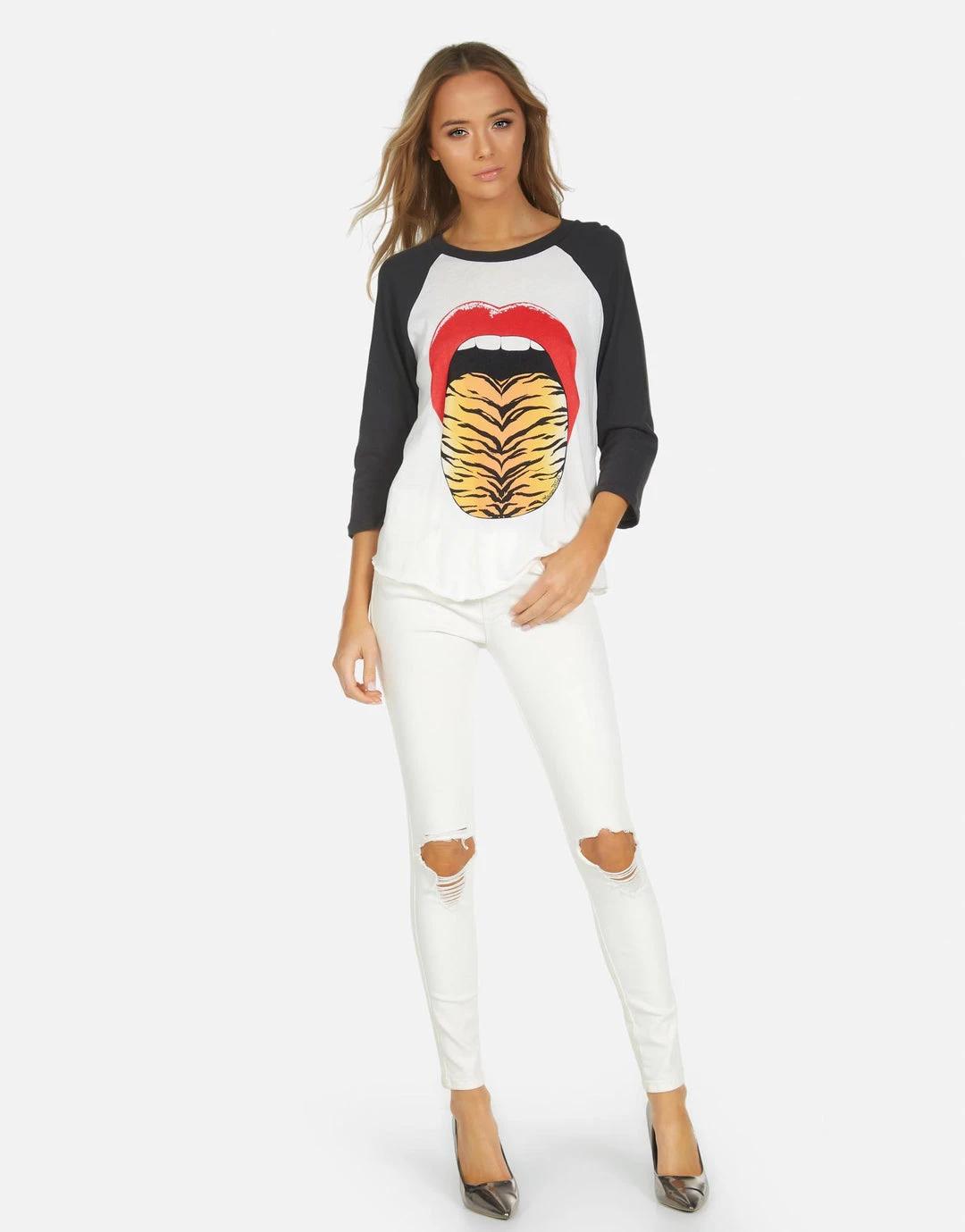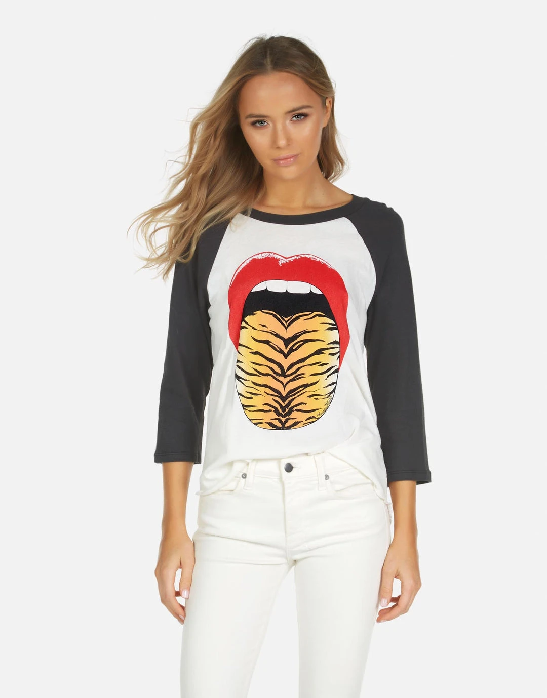 WEB EXCLUSIVE | Tiger Tongue Printed on Ultra Soft Lightweight Baseball Tee in Milk / Onyx by Lauren Moshi.