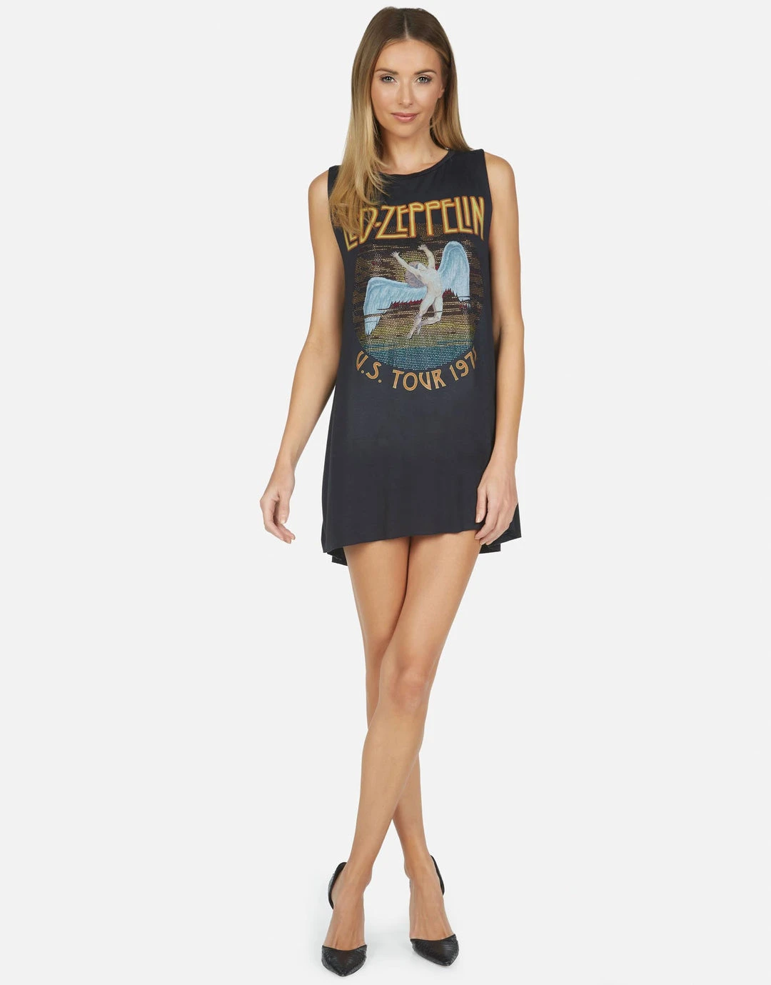 Led Zeppelin Printed on Ultra Soft Lightweight Mini Dress in Onyx by Lauren Moshi.