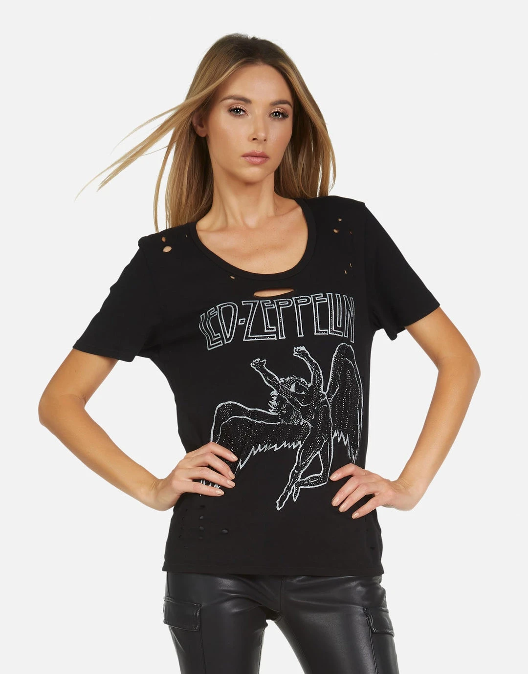 Led Zeppelin Printed on Ultra Soft Lightweight Tee in Black by Lauren Moshi.