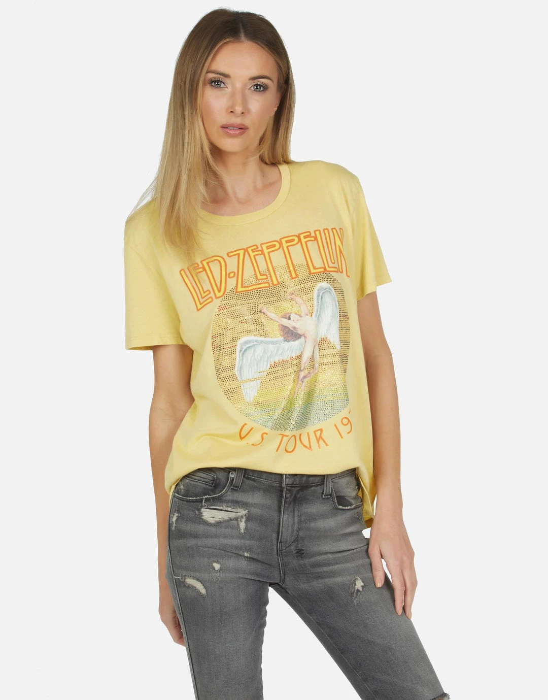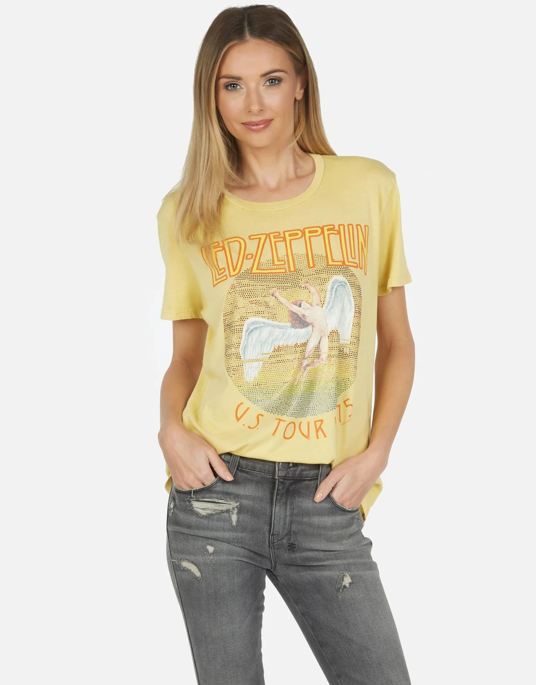 Crystal Led Zeppelin Printed on Ultra Soft Lightweight Tee in Pollen by Lauren Moshi.