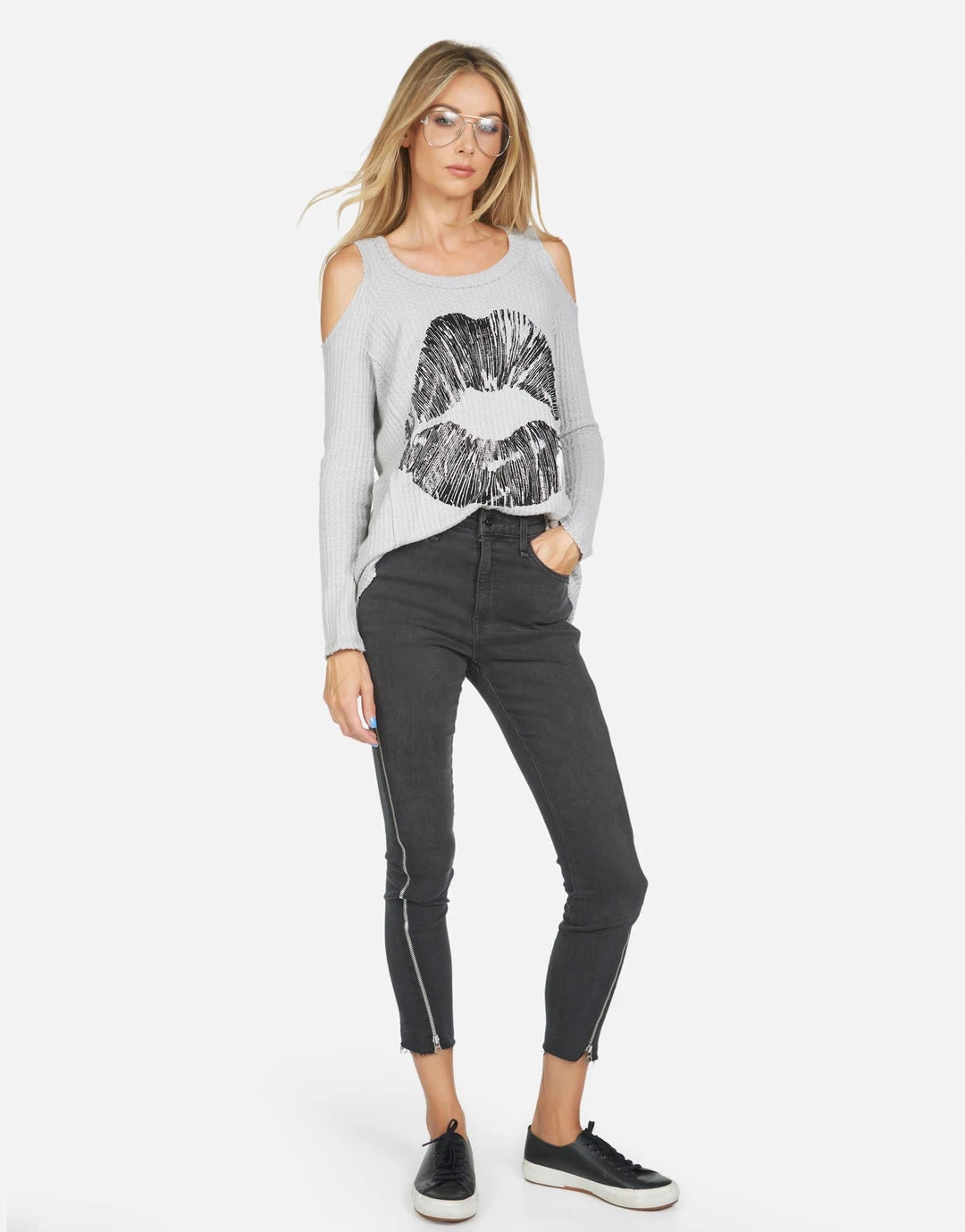 WEB EXCLUSIVE | Vinyl Lip Printed on Ultra Soft Lightweight Thermal in Heather Grey by Lauren Moshi.