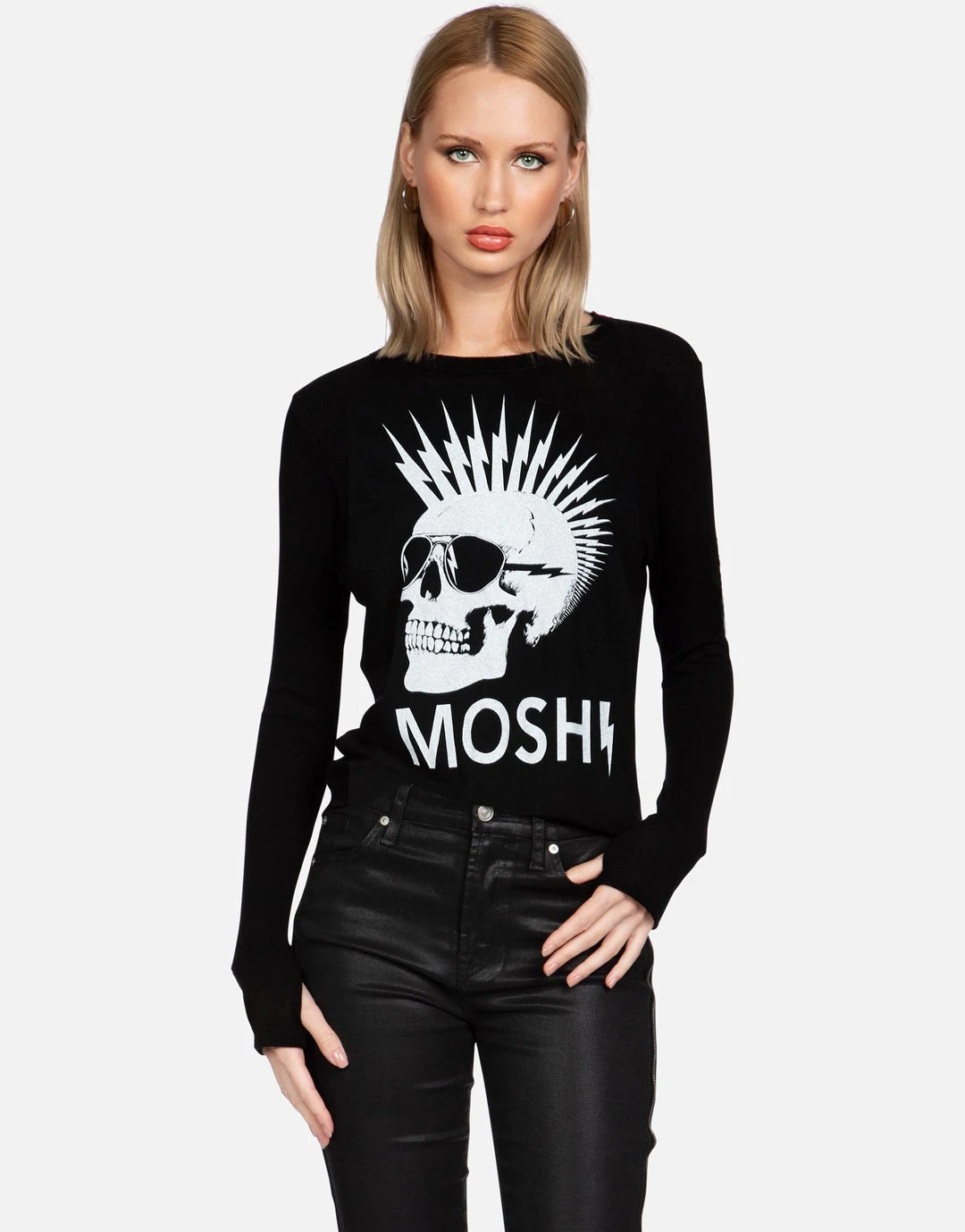 WEB EXCLUSIVE | Moshi Lightning Skull Printed on Ultra Soft Lightweight Thermal in Black by Lauren Moshi.