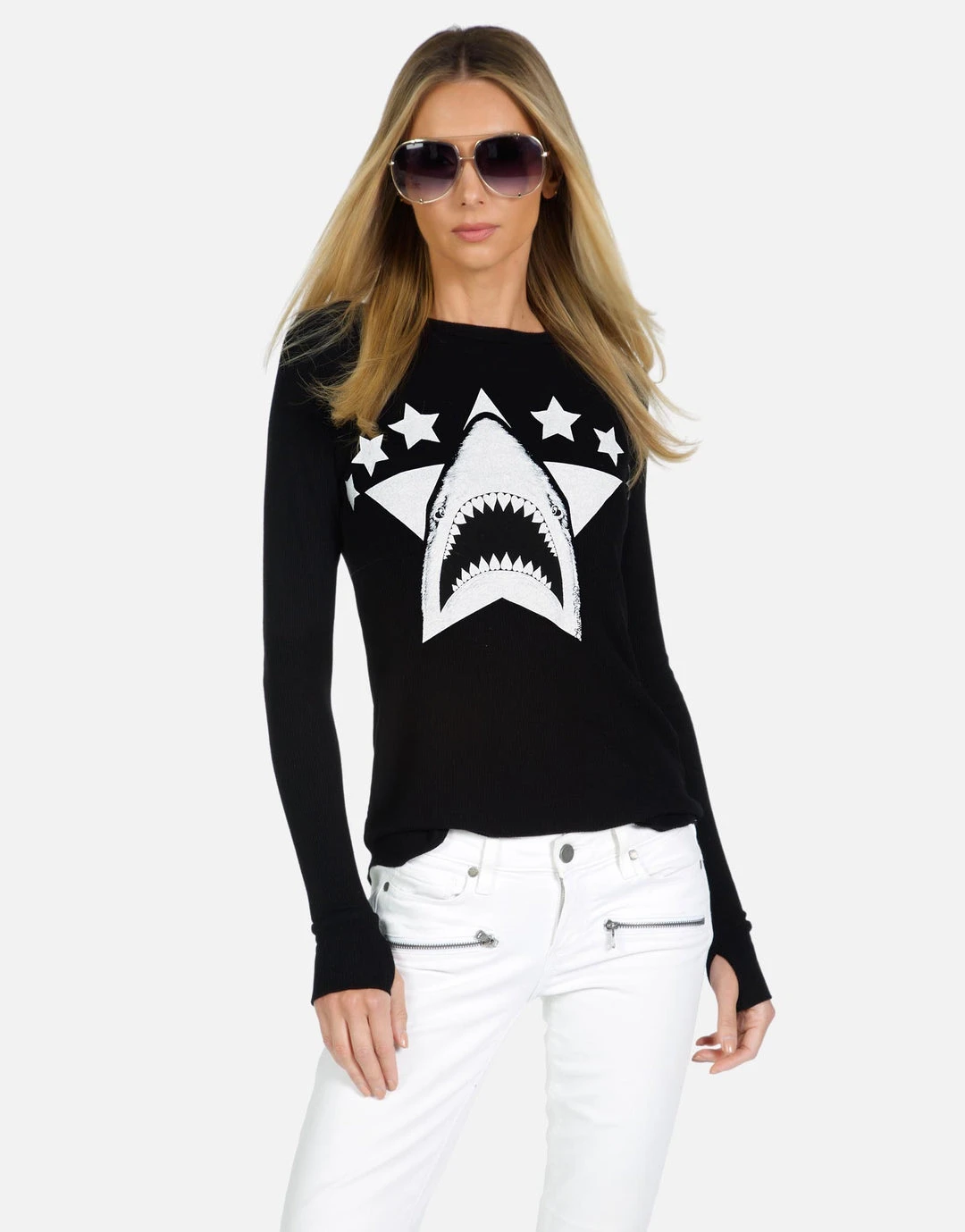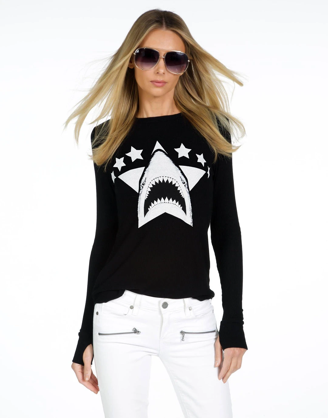 WEB EXCLUSIVE | Star Shark Printed on Ultra Soft Lightweight Thermal in Black by Lauren Moshi.
