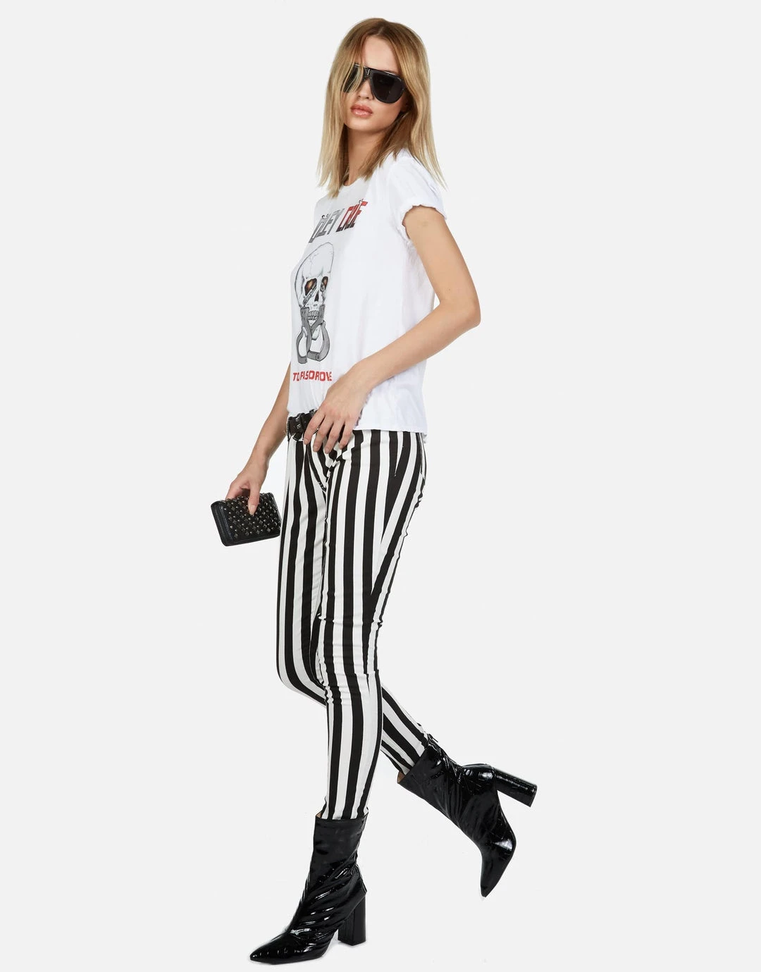 WEB EXCLUSIVE | Mötley Crüe Too Fast For Love Skull Printed on Ultra Soft Lightweight Tee in Onyx & White by Lauren Moshi.