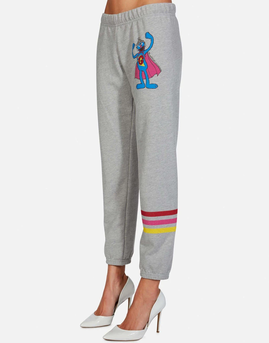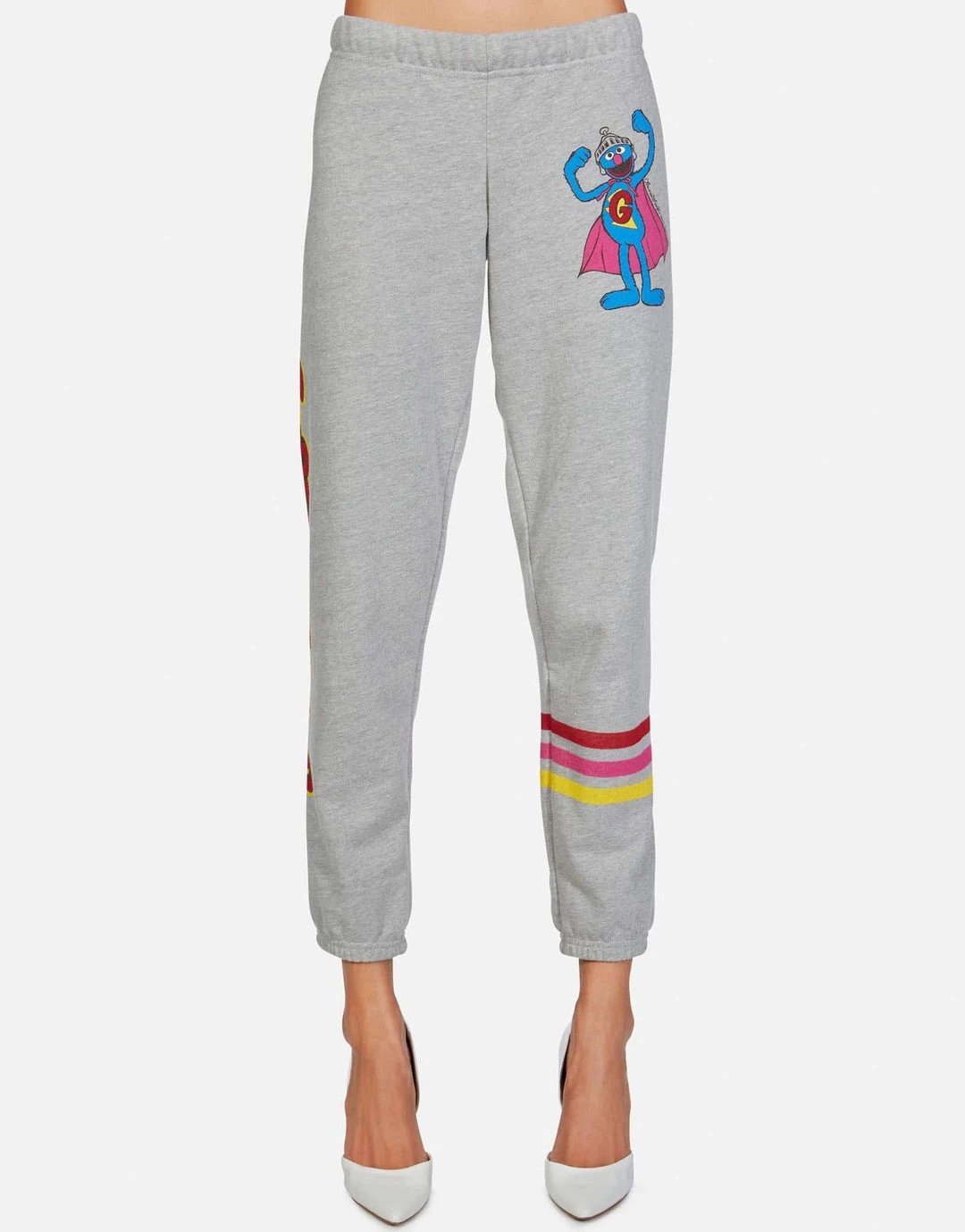Super Grover Printed on Ultra Soft Lightweight Sweatpant in Heather Grey by Lauren Moshi.