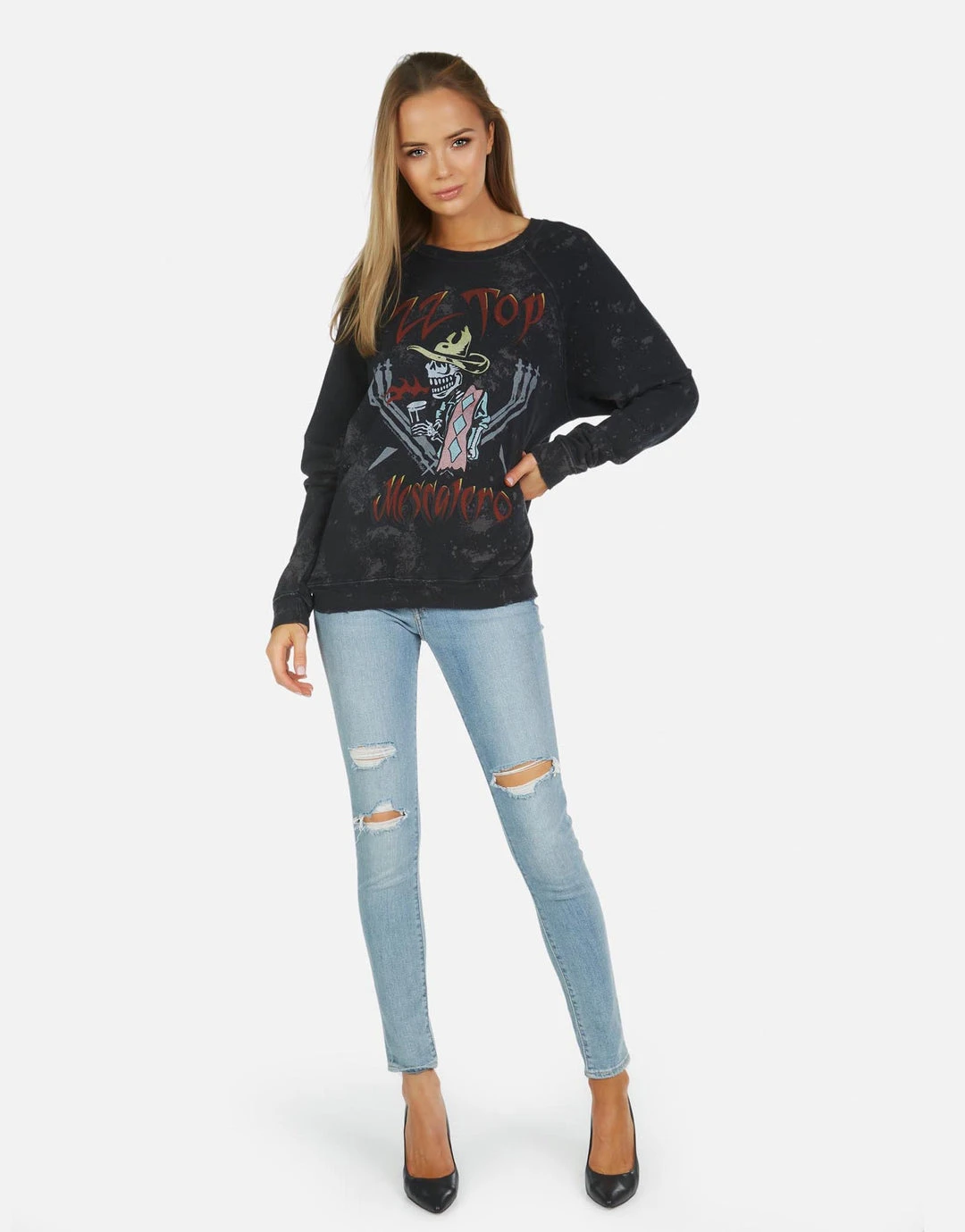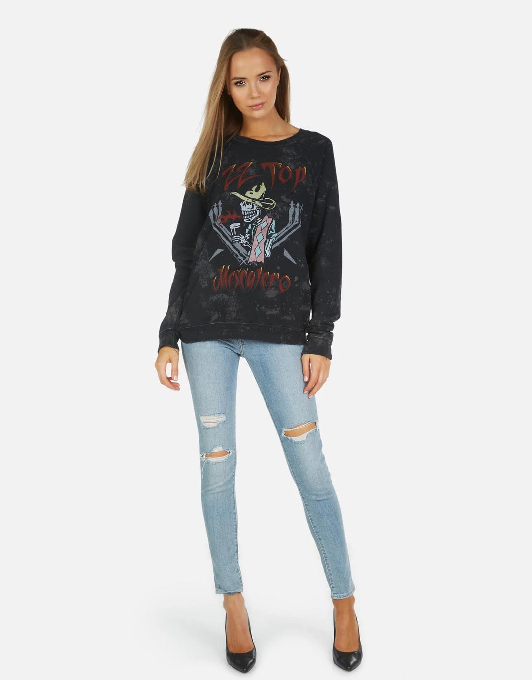 ZZ Top Printed on Ultra Soft Lightweight Pullover in Onyx Wash by Lauren Moshi.