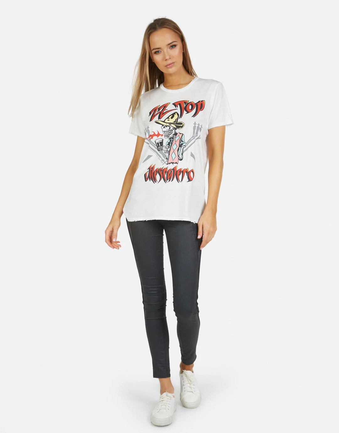 ZZ Top Printed on Ultra Soft Lightweight Tee in Milk by Lauren Moshi.