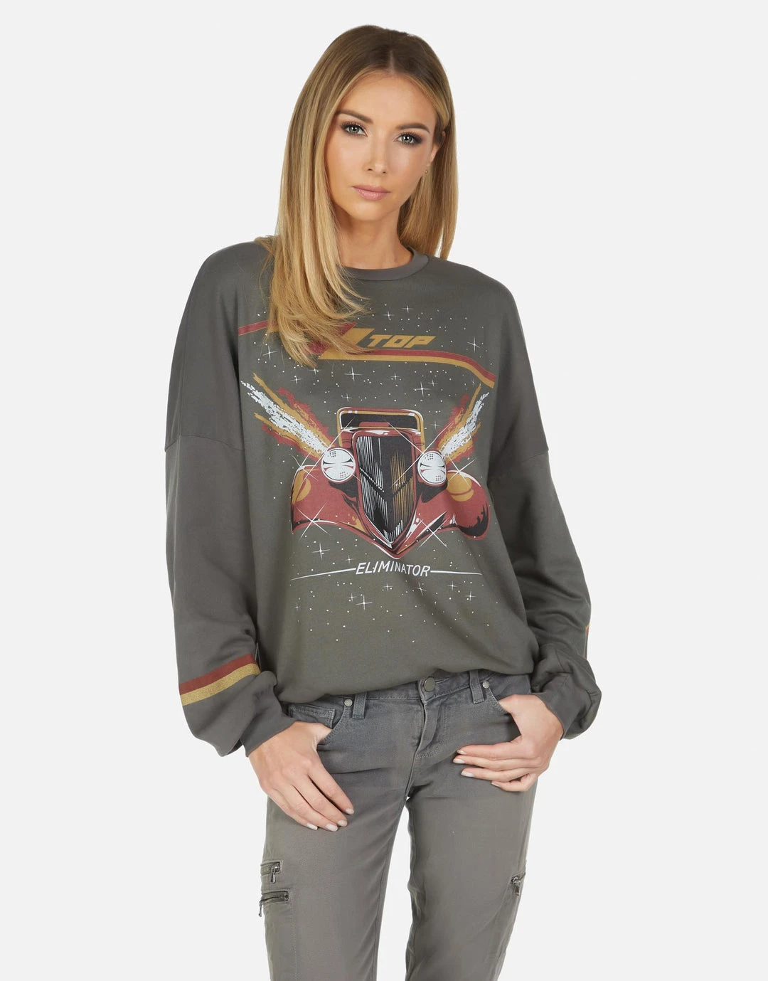 ZZ Top Eliminator Printed on Ultra Soft Lightweight Pullover in Vintage Onyx by Lauren Moshi.