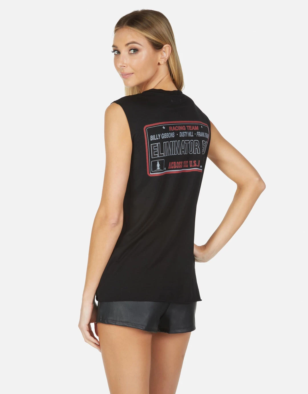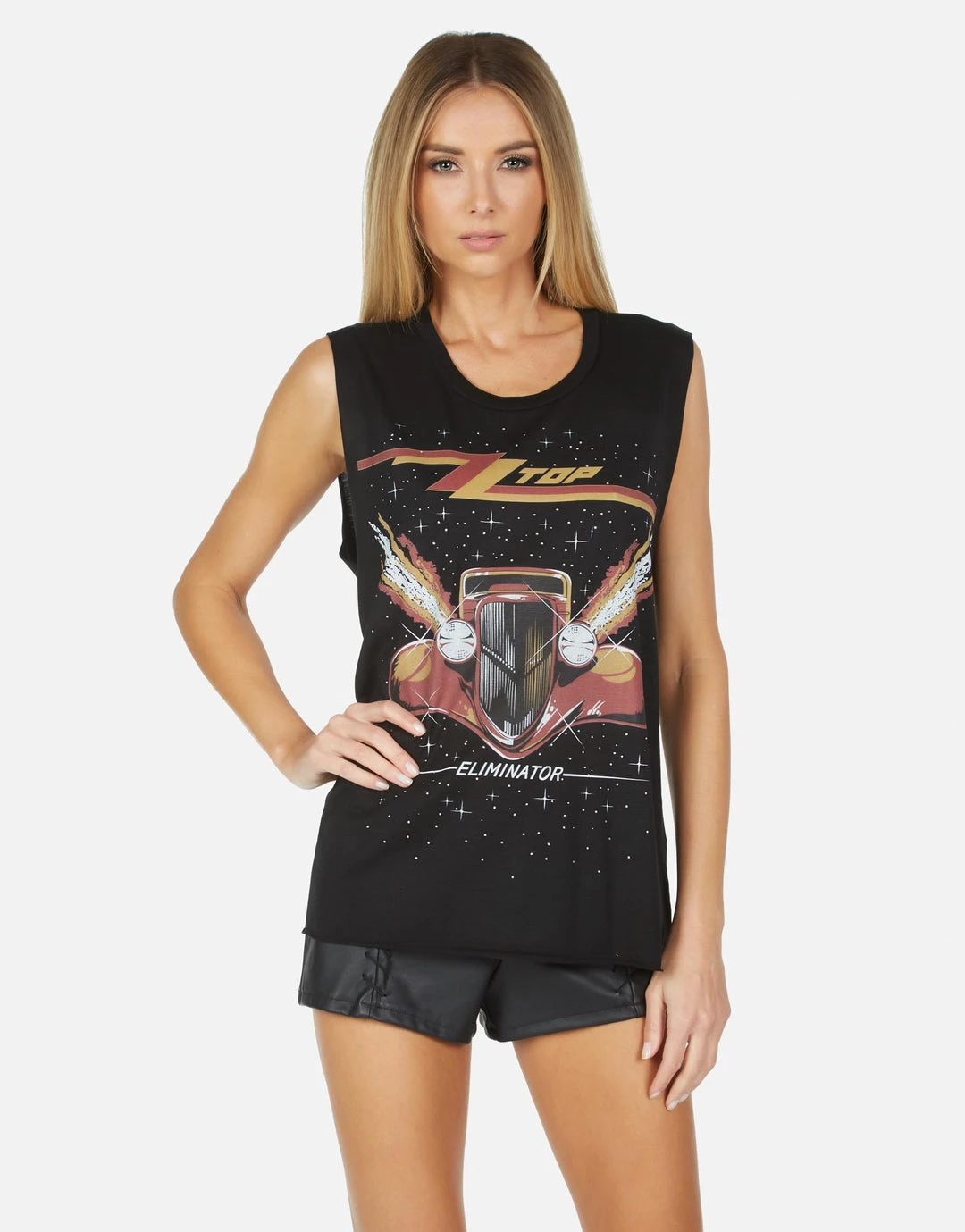 ZZ Top Eliminator Printed on Ultra Soft Lightweight Tee in Black by Lauren Moshi.
