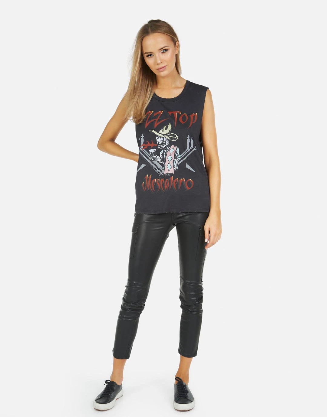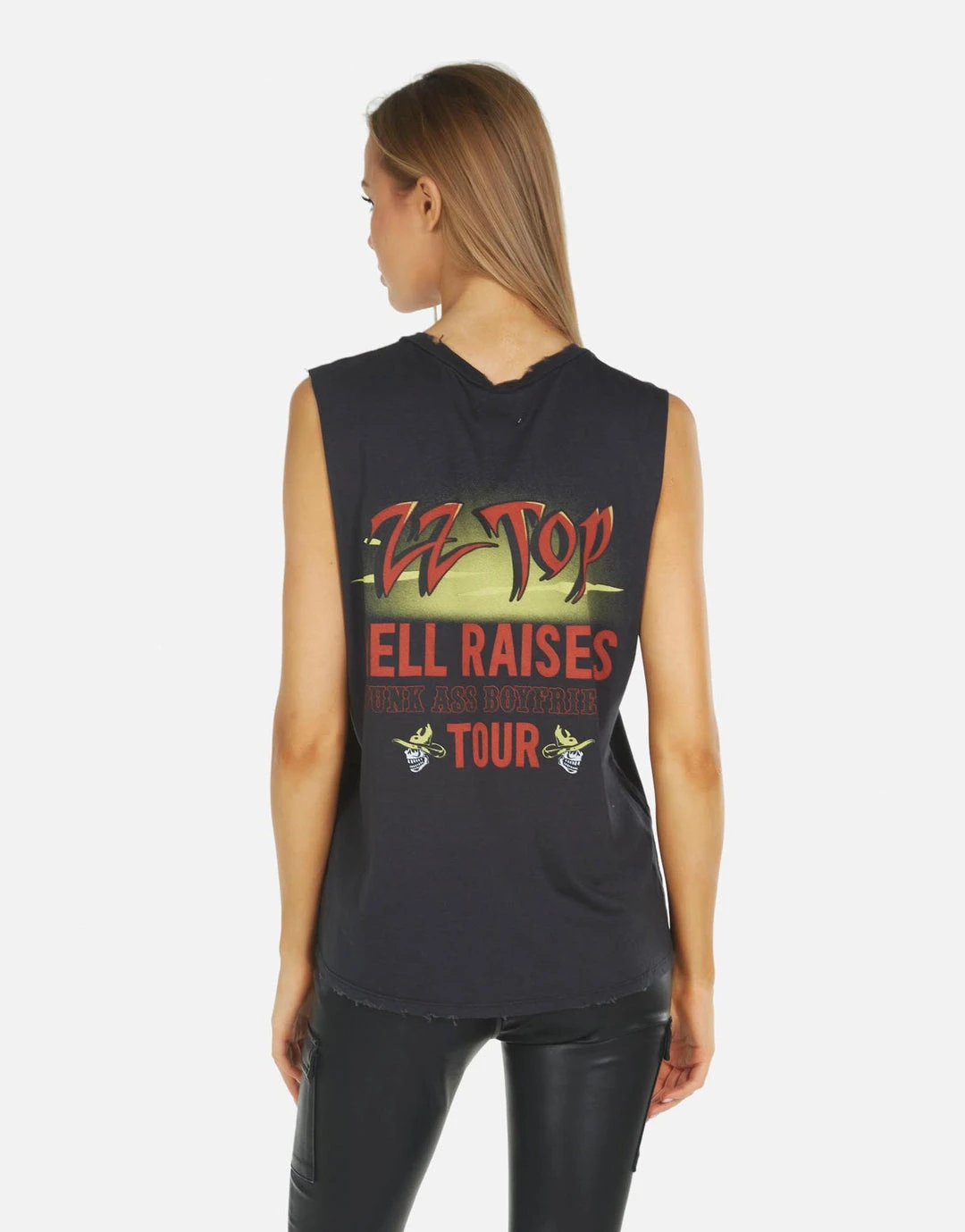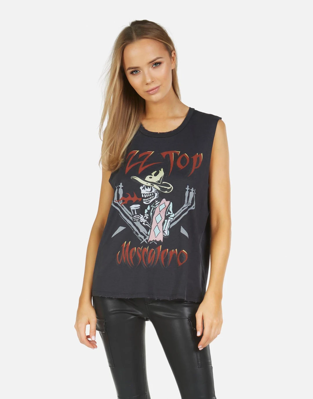 ZZ Top Printed on Ultra Soft Lightweight Tank in Onyx by Lauren Moshi.