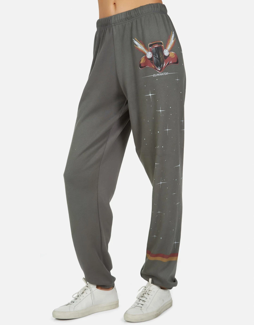 ZZ Top Eliminator Printed on Ultra Soft Lightweight Sweatpant in Vintage Onyx by Lauren Moshi.